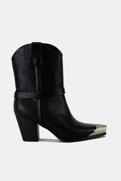 Beast Fashion Faux Leather Metal Toe Ankle Boots
